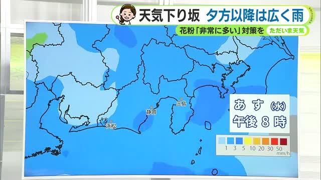 あす土曜はすっきり晴れ 日曜は日差し弱まる ヒノキ花粉の飛散がピークに 【静岡・ただいま天気 3/20】