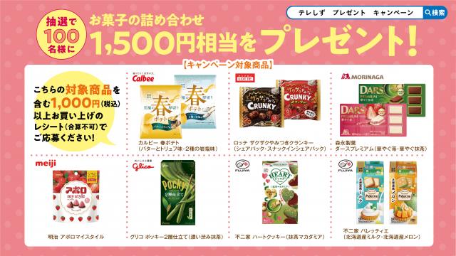 お菓子の詰め合わせ(¥1,500相当)を全店で抽選で100名様にプレゼント
