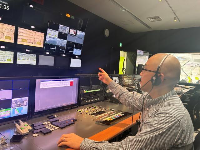 PDとは、スタジオ横のサブ(副調整室)で、VTRやテロップの送出、カメラワーク、尺配分などを管理し、生放送の司令塔として番組を進行させる役割です。生放送なので、時には突発的なニュースや事象が発生し、迅速かつ的確な対応をしなければなりません。