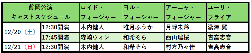 アーニャ:泉谷星奈/月野未羚/西山瑞桜/村方乃々佳(交互出演)