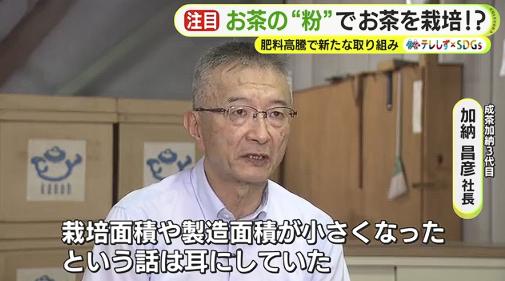 様々な物が値上がりし肥料の価格も高騰する中、これまでは廃棄されてしまっていたお茶の“粉”を使ってお茶を育てるという新たな取り組みが始まっています。