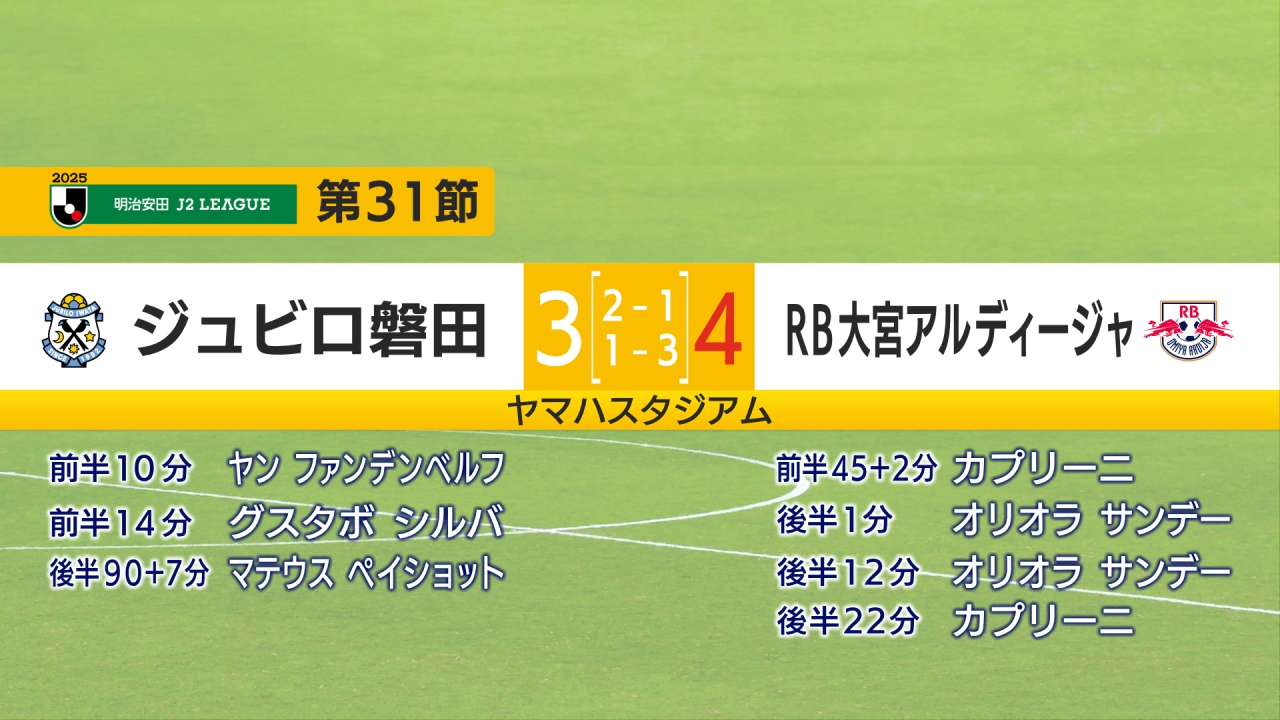 ホームに大宮を迎えたジュビロ磐田は前半10分上原のコーナーキックにファンデンベルフ!加入後、初ゴールで先制すると。