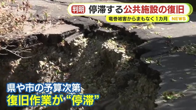 静岡県牧之原市や吉田町などでの竜巻被害から1カ月ほどが過ぎようとしています。住宅などの復旧が進められる一方で公共施設の復旧は遅れているようです。