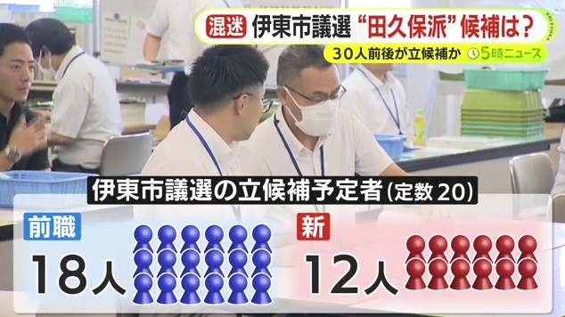 田久保市長に対する不信任案可決に伴う市議会の解散で行われる伊東市議選。10月1日までに事前審査が終わり30人前後が立候補するとみられています。