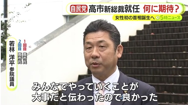 静岡県内の国会議員で唯一高市新総裁の推薦人に名を連ねたのが若林洋平 参議院議員です。