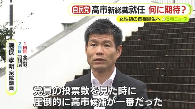 基本的には主義主張の部分もそうだが、党員の投票数を見た時に圧倒的に高市候補が一番だった