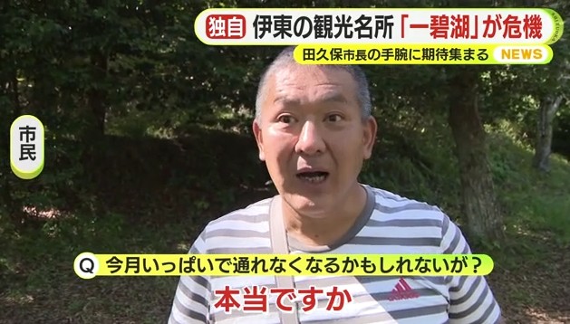 (Q.今月いっぱいで通れなくなるかもしれないが?)え~本当ですか?なんでですか?1周できる所とガイドブックにも書いてあるので、それを楽しみに観光に来る人もいるので、伊東市も(土地の)持ち主もどうかお願いできれば