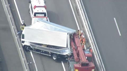 警察によると、何らかの理由で停車していた軽自動車をトラックが避けきれず衝突し、その後、クレーン車がトラックに追突したと見られています。