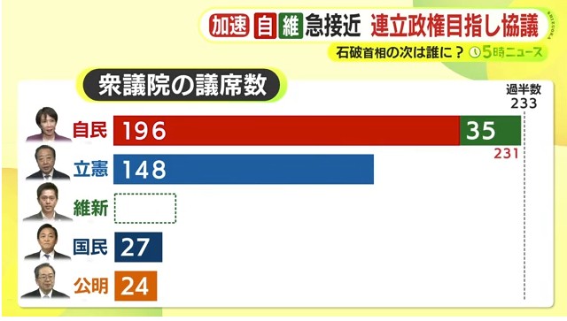 一方、維新と組めば231議席で過半数の233により近付くことになります。