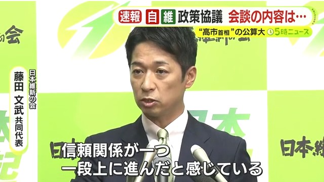 これに対し、吉村代表は副首都構想など維新が掲げる政策の実現を求めたといいます。