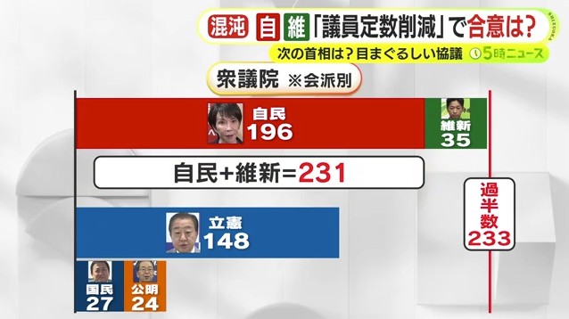 維新が首相指名選挙で自民に協力すれば、高市総理誕生の公算が大きくなります。