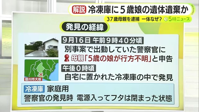 警察はすぐ捜索を開始し、午後0時頃に自宅に置かれた冷凍庫の中で発見。