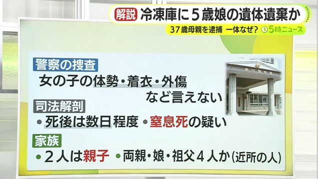 警察は女の子がどんな体勢だったか、服を着ていたかどうか外傷があるかどうかは捜査の都合上言えないとしています。