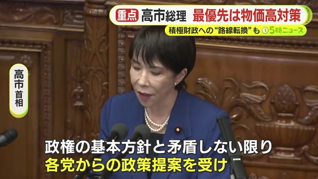 高市総理が語ったのは少数与党での政権運営となるなかで、各党からの政策提案を受けていくことでした。
