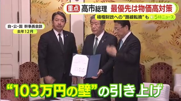 またガソリンの暫定税率の廃止などとともに公明・国民民主の幹事長と合意をしているいわゆる103万円の壁の引き上げについては―。