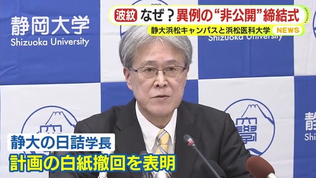 再編問題に揺れる静岡大学と浜松医科大学。11月10日、それぞれの間で新たな協定が結ばれましたが、締結式は異例の非公開となりました。一体なぜなのでしょうか?
