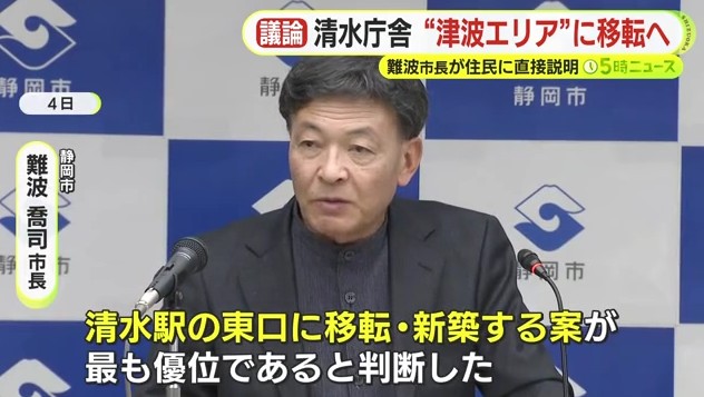 難波市長は先週、清水庁舎をJR清水駅東口へ移転・新築する方針を明らかにしました。