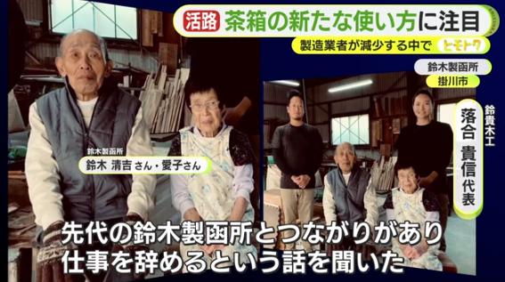 落合貴信 代表と妻の加依さんは掛川市で明治時代から茶箱を製造してきた鈴木製函所で学び、その技術を引き継ぎました。