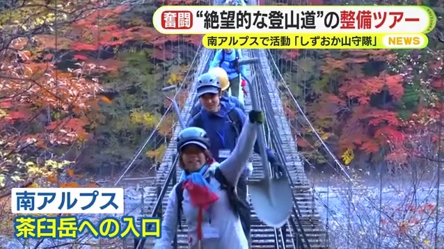 荒れた登山道を利用者の手で自ら直す「しずおか山守隊」の整備ツアーが南アルプスで初めて開催されました。