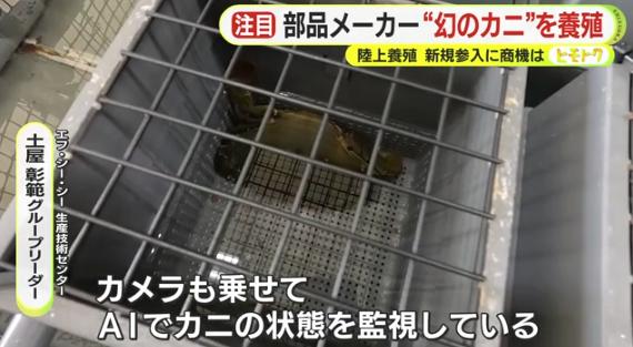 自動で動かすところが本業で工場の自動化をするときに使うような技術を使って自動でエサを落としたり自動で掃除をしたり、カメラも乗せてAIでカニの状態を監視している