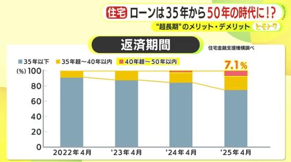住宅金融支援機構の調査によると、利用した住宅ローンの返済期間について35年超と答えた人の割合は3年で2.7倍に。