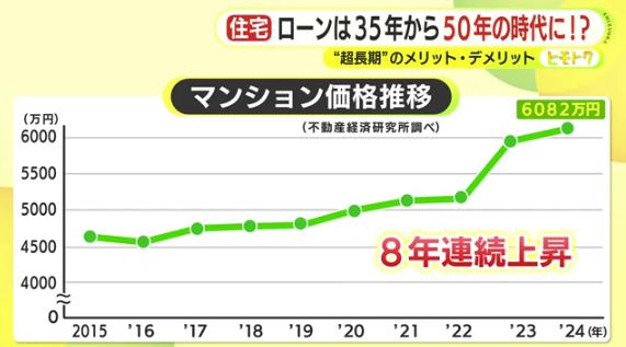 不動産経済研究所の発表では新築分譲マンションの価格は全国平均で6082万円と8年連続で上昇。