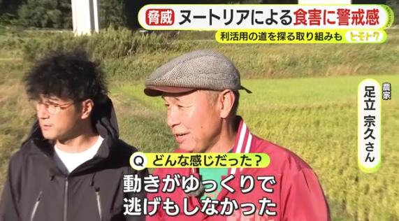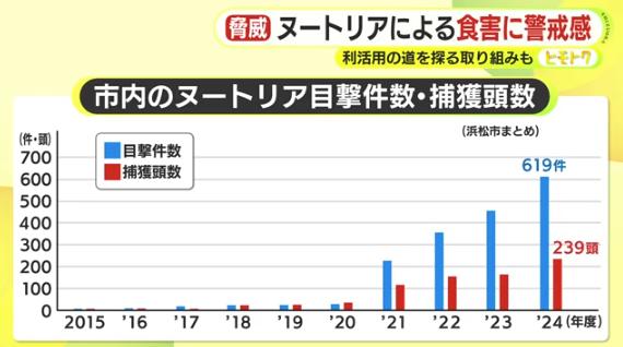浜松市ではすでに浜名湖から離れた浜名区と天竜区にまで生息域を拡大していて、足立宗久さんは2025年5月、稲をかじられる被害に遭っていて、農林水産省によればヌートリアによる農業被害は全国で年間 約5000万円に上っています。
