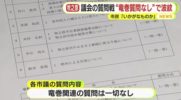 12月10日から始まる市議会の質問戦での各市議の質問内容に、竜巻関連は一切入っていません。