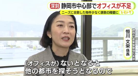企業が新たな場所や都市へと進出する場合、重要な要素の1つとなるのがオフィスの立地や規模などの条件面です。こうした中、企業の誘致に力を入れる静岡県静岡市ではこのオフィスをめぐり悩みを抱えています。