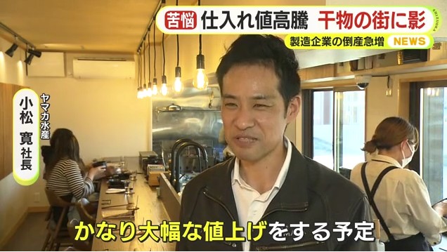 値上げをしないと赤字になる部分については値上げをせざるを得ない。慎重に見極めつつと思っている。最高に美味しい干物を用意しているので干物を忘れないで食べてもらいたい