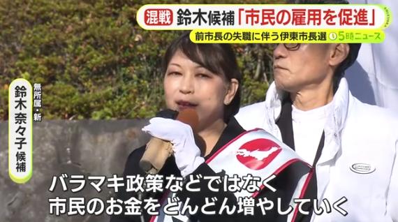 「伊東に誇りを取り戻す」をキャッチフレーズに市民への現金給付などの政策を打ち出しています。