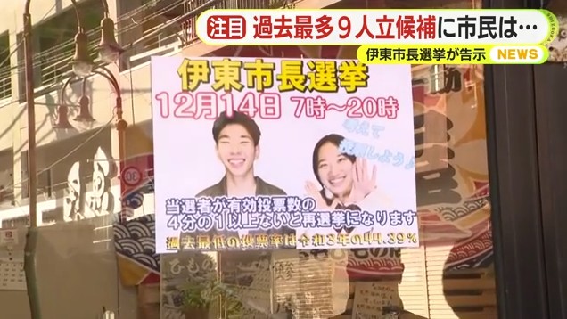 田久保前市長の失職に伴い12月7日告示された伊東市長選挙。これまでの過去最多を大きく超える9人が立候補した“異例”の選挙戦に市民は戸惑い気味です。
