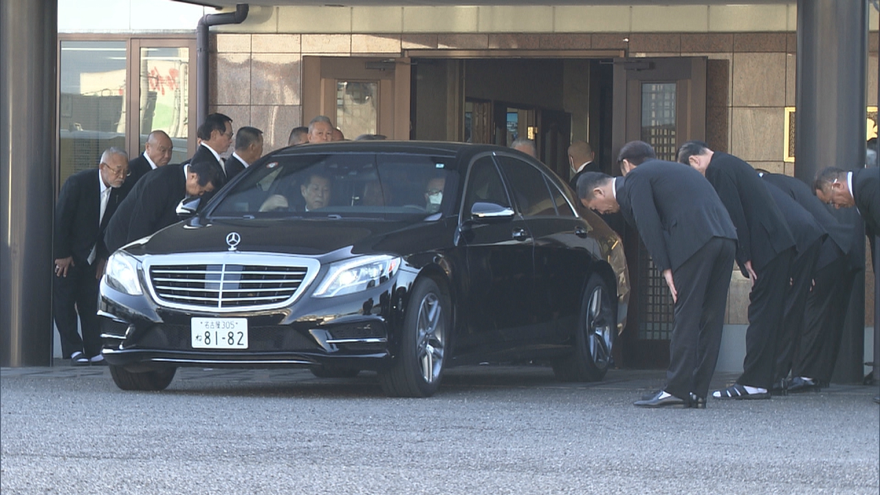 清水一家の組事務所を後にする六代目山口組・司忍 組長と見送る幹部