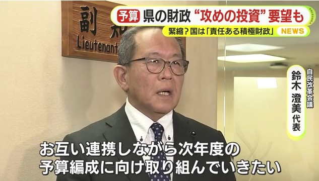 こうした中、17日県議会の最大会派自民改革会議から鈴木知事に手渡されたのは2026年度の予算編成への要望書です。