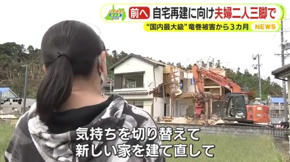 被災当時から屋根も吹っ飛んでしまった状態なので、このまま住み続けることはできず、建て替えしか選択肢がないとは思っていたが、いざ家が壊されているのを見るとやっぱり悲しい。気持ちを切り替えて新しい家を建て直して、そこからもう1回頑張ってみるというところに今度からは気持ちを切り替えたい