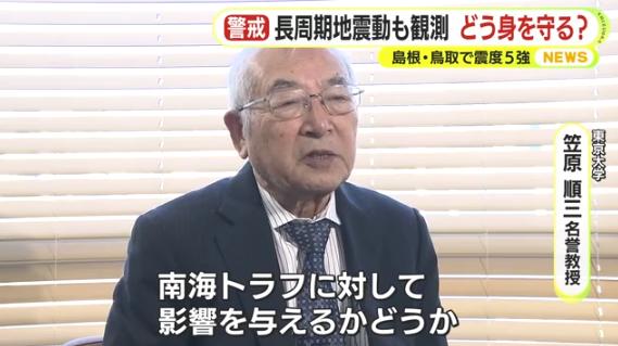 過去に鳥取地震が1943年に起きて、その次の年に東南海地震という南海トラフ沿いの巨大地震が起きた。そして、南海地震が起きた。そういうこともあって、日本海側の地震、今回の地震が南海トラフに対して影響を与えるかどうか、これが一番心配なところ