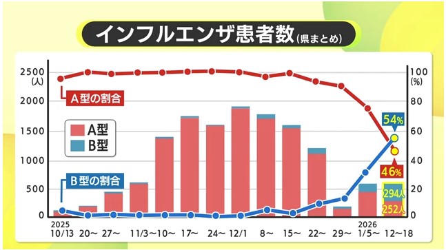 例年だと(B型は)A型の流行が終わって2月・3月くらいからが多いと思うが、今年はA型が早くから流行し始めたので、それにつれてB型も例年より早く流行しているのでは