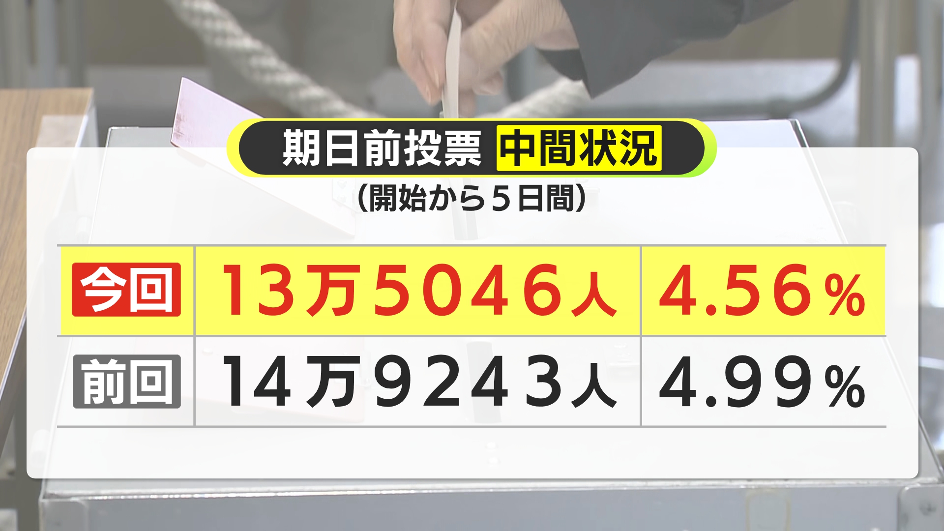 県選挙管理員会によりますと、2月1日までに期日前投票を済ませた有権者は県内で13万5000人余りと前回選の同じ時期より1割下回っています。