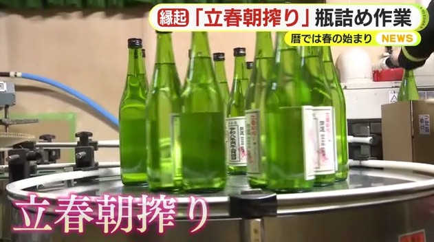 静岡県掛川市の土井酒造場で行われていたのは春の訪れを祝う縁起の良い日本酒・立春朝搾りの瓶詰め作業です。