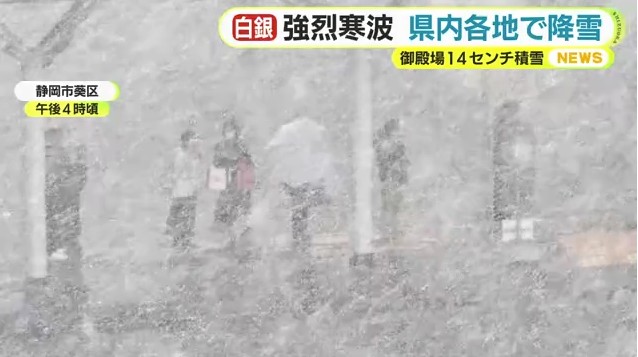 普段は雪が降らない静岡市でも雪が強まる時間が…。