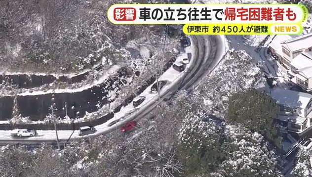 強い寒気が流れ込んだ影響で、静岡県内では2月8日、東部や伊豆を中心に雪となりました。伊東市の国道では渋滞が発生し、約450人が小学校などに避難しました。